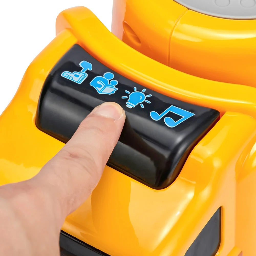 • Push-and-go friction motors keep little hands busy without batteries in the small trucks, while the cab’s 8-second light-and-sound button adds just the right excitement.